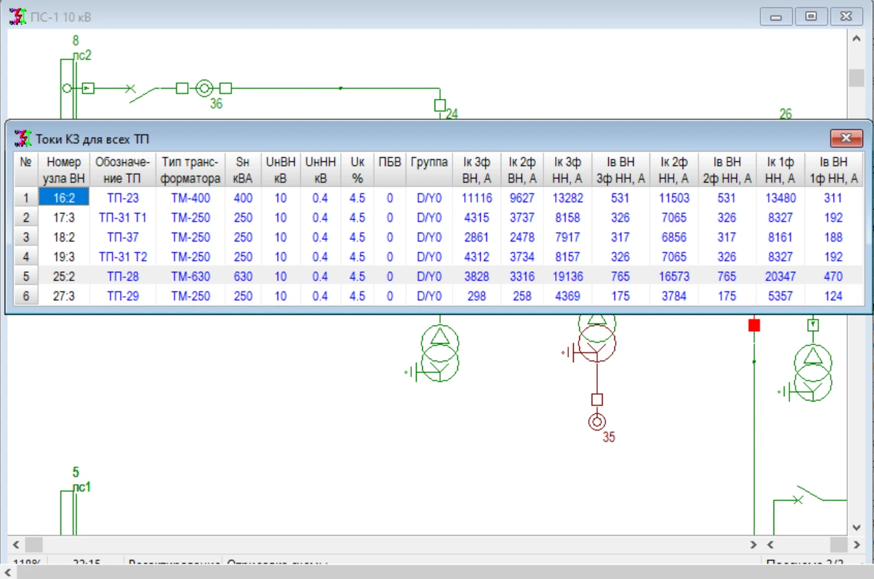 EnergyCS ТКЗ выполняет расчеты токов короткого замыкания (КЗ) для проверки оборудования по термическому и электродинамическому действию токов короткого замыкания, расчеты токов КЗ для определения уставок релейной защиты и автоматики