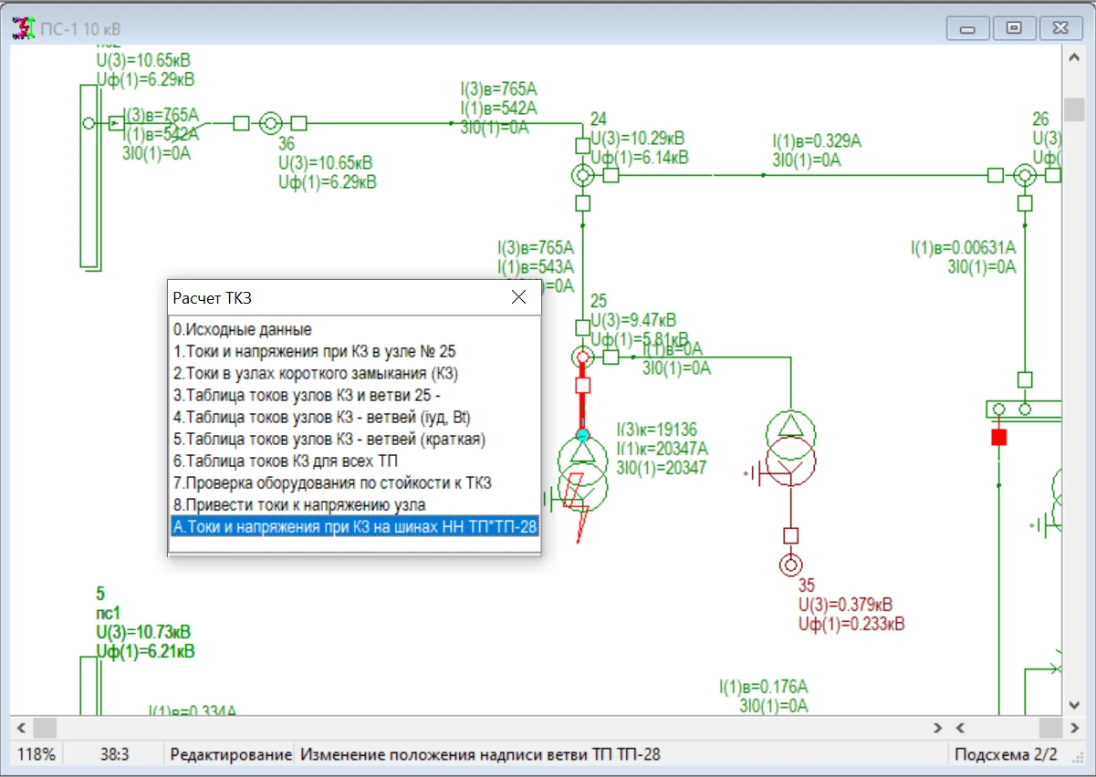 На схеме программа графически показывает наличие РПН. Вместо выключателей теперь используется понятие «аппарат». В качестве аппарата можно рассматривать выключатель, выключатель нагрузки, разъединитель, отделитель, предохранитель плавкий, предохранитель-разъединитель, а также трансформаторы тока на одной, двух или трех фазах — все с соответствующим графическим отображением.